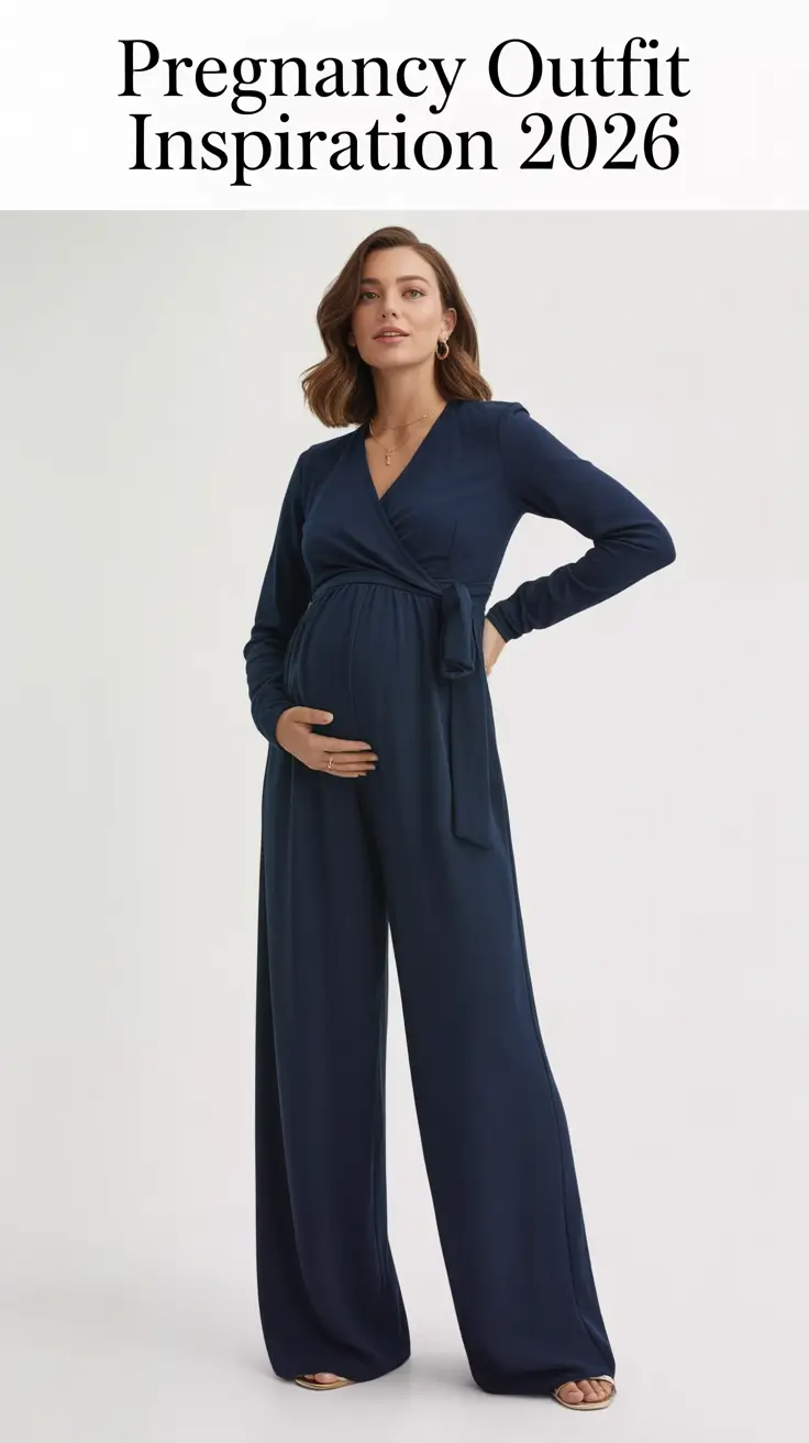Light materials, loose-fitting and a dull sage color- this is the kind of outfit that is chic yet relaxed. An oversized olive jumpsuit with a white long sleeve top under it will be clean and grounded, which the pregnancy clothes of spring and early fall 2026 require.
