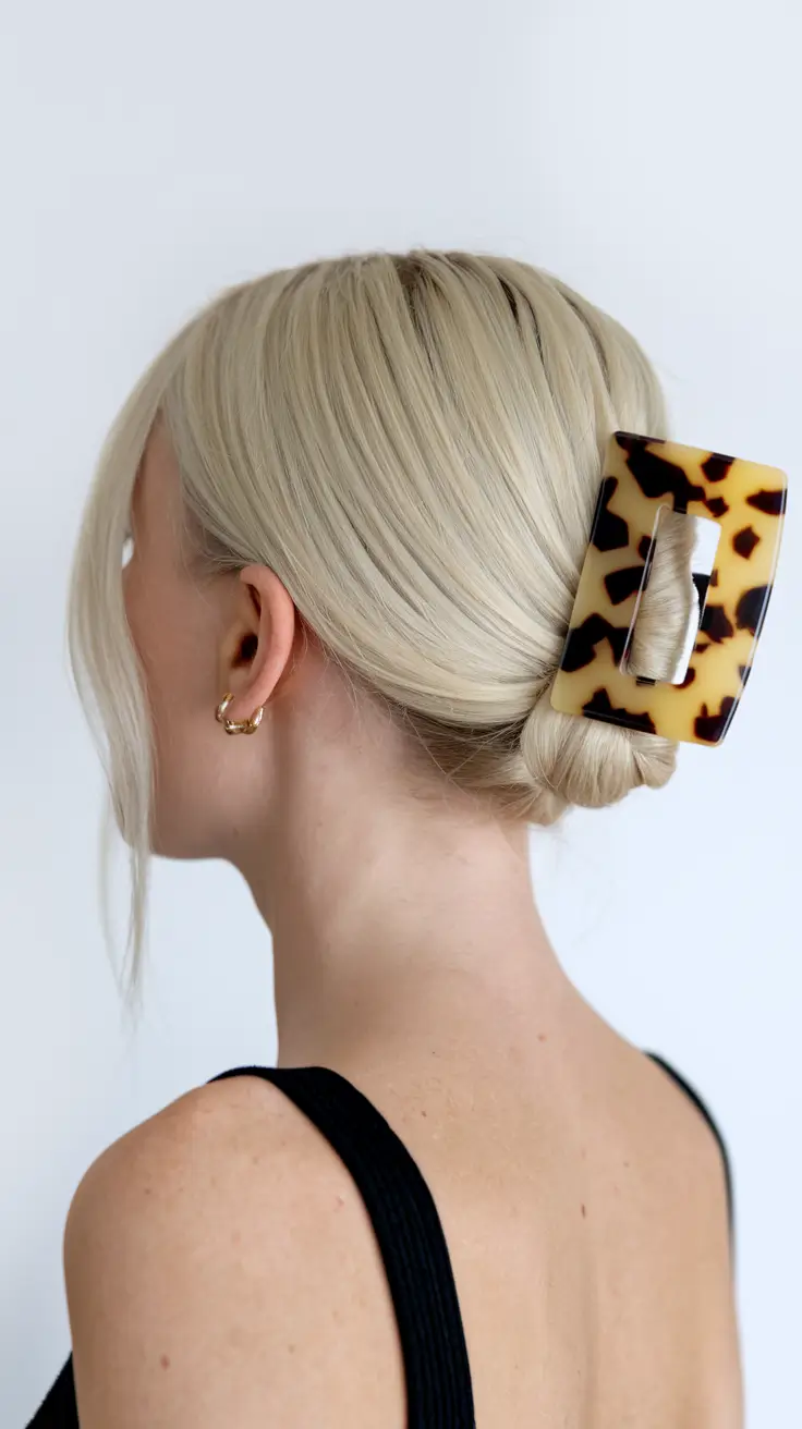 A twist can work well for any hair length or thickness, as it helps create the impression of more volume. Besides, the tortoiseshell clip is trendy enough without being too much.