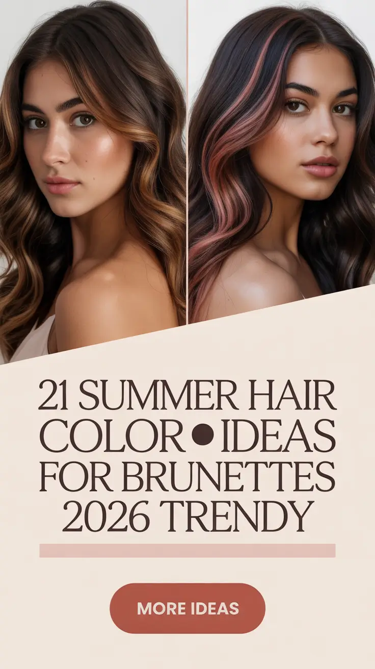 Summer Hair Color Ideas for Brunettes 2026 Trendy – Soft Balayage Highlights & Caramel Glow