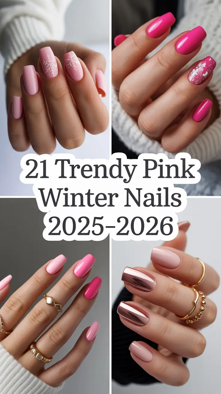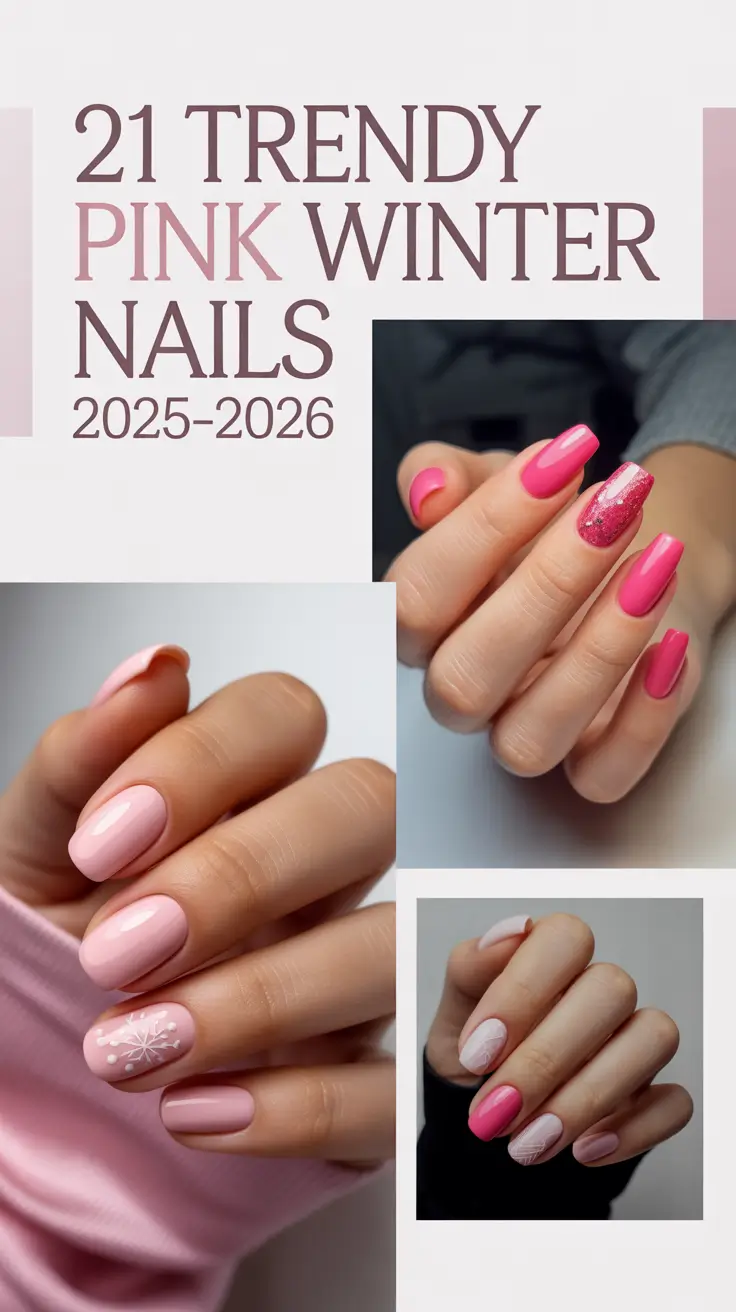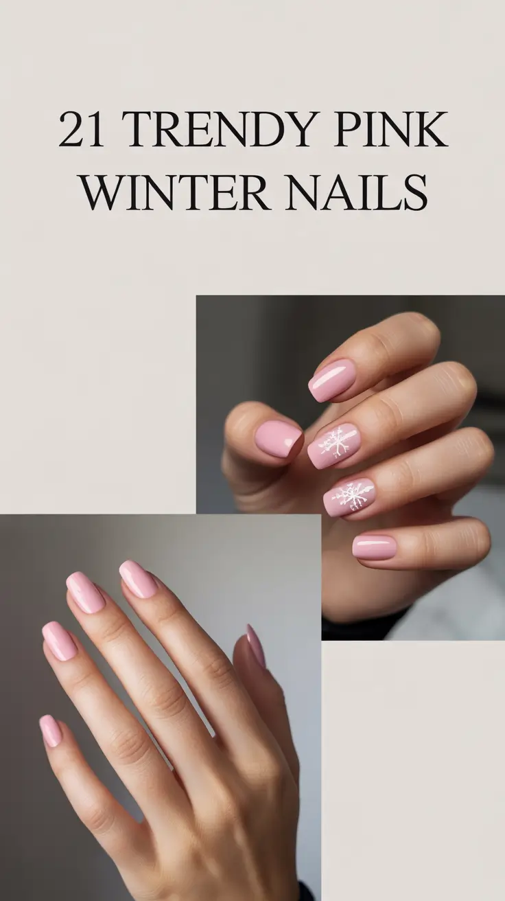 Trendy Pink Winter Nails 2025–2026: Cute, Glitter & Snowflake Designs for Almond and Short Square Inspo
