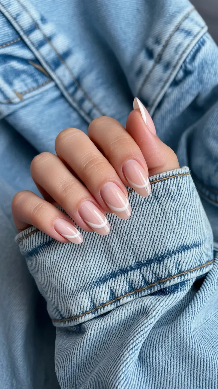 Sometimes less truly is more. This simple white curvy French manicure is light, classy, and simplicity is invigorating. The almond shape makes the contrast softer with that barely-there luxury feel that will never become outdated. It is among the most wearable short winter french tip nails looks that can be used in everyday life.