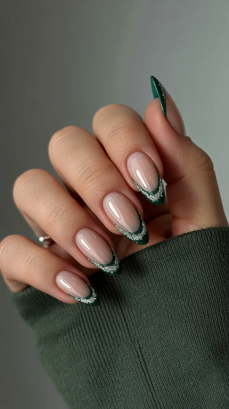 Emerald Frost – Green Glitter French Tips