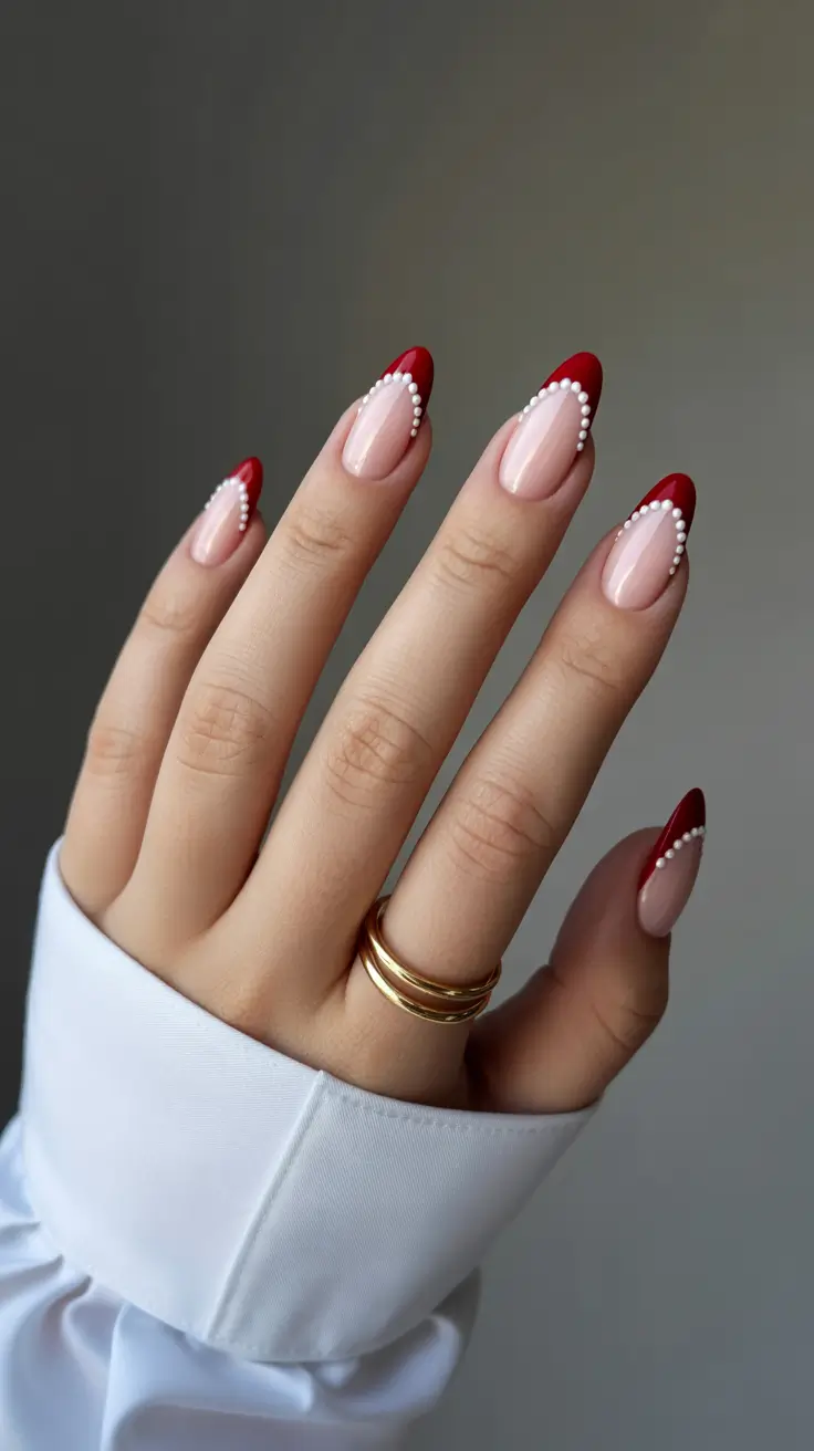 Velvet Rouge – Pearl-Trimmed French Tips